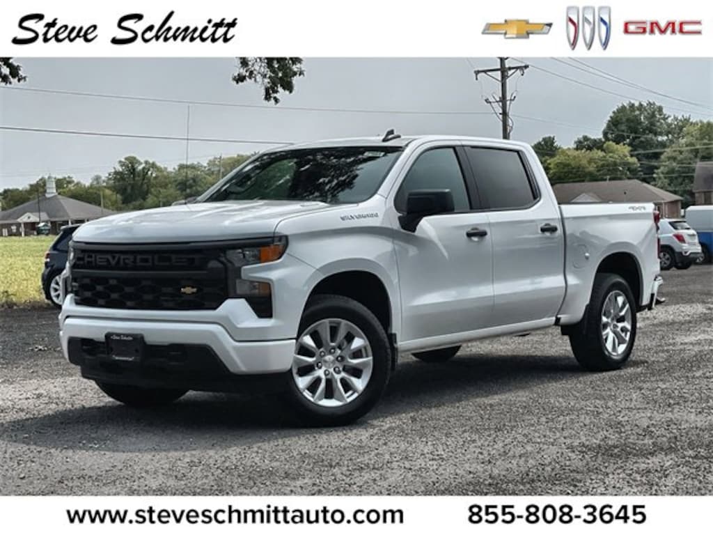 Price advertised is subject to qualifying for all applicable rebates. If you're looking for a new car, truck or SUV near St. Louis or Edwardsville, then look no further than Steve Schmitt Inc. At our Highland dealership, we have a large variety of Chevy, Buick, and GMC models, all just ripe for the picking. Steve Schmitt has delivered four generations of Customer Service...right here in Highland! Steve Sr. Plays an active role in the dealership as well as the community, and Steve Jr. Manages the day-to-day operations. At Steve Schmitt Chevy Buick GMC, it is more than a name on a sign...it is our family looking forward to exceeding your family's expectations! This vehicles includes the following features Custom Convenience Package (Electric Rear-Window Defogger, EZ Lift Power Lock & Release Tailgate, LED Cargo Area Lighting, Remote Vehicle Starter System, and Theft Deterrent System (Unauthorized Entry)), Custom Value Package, High Capacity Suspension Package, Preferred Equipment Group 1CX (10-Way Power Driver Seat w/Lumbar, 120-Volt Bed Mounted Power Outlet, 120-Volt Interior Power Outlet, 3.5 Monochromatic Display Driver Info Center, Bluetooth® For Phone, Color-Keyed Carpeting Floor Covering, Deep-Tinted Glass, Dual Rear USB Ports (Charge Only), Electronic Cruise Control, Front Frame-Mounted Black Recovery Hooks, Front Rubberized Vinyl Floor Mats, HD Rear Vision Camera, Manual Tilt Wheel Steering Column, OnStar Services Capable, Power Front Windows w/Driver Express Up/Down, Power Front Windows w/Passenger Express Down, Power Rear Windows w/Express Down, Rear 60/40 Folding Bench Seat (Folds Up), Rear Rubberized-Vinyl Floor Mats, Remote Keyless Entry, SiriusXM Trial Subscription, Standard Tailgate, Teen Driver, Tire Pressure Monitoring System, and Wi-Fi Hot Spot Capable), Trailering Package (Hitch Guidance), 3.42 Rear Axle Ratio, 4-Wheel Disc Brakes, 40/20/40 Front Split-Bench Seat, 6 Speakers, 6-Speaker Audio System, ABS brakes, Air Conditioning, Alloy wheels, AM/FM radio: SiriusXM, Apple CarPlay/Android Auto, Auto High-beam Headlights, Auto-Locking Rear Differential, Automatic Emergency Braking, Brake assist, Bumpers: body-color, Chevytec Spray-On Black Bedliner, Cloth Seat Trim, Compass, Delay-off headlights, Driver door bin, Driver vanity mirror, Dual front impact airbags, Dual front side impact airbags, Electronic Stability Control, Emergency communication system: OnStar, Following Distance Indicator, Forward Collision Alert, Front anti-roll bar, Front Center Armrest w/Storage, Front License Plate Kit, Front Pedestrian Braking, Front reading lights, Front wheel independent suspension, Fully automatic headlights, Heated door mirrors, Illuminated entry, IntelliBeam Automatic High Beam On/Off, Lane Keep Assist w/Lane Departure Warning, Low tire pressure warning, Occupant sensing airbag, Outside temperature display, Overhead airbag, Overhead console, Panic alarm, Passenger door bin, Passenger vanity mirror, Power door mirrors, Power driver seat, Power steering, Power windows, Premium audio system: Chevrolet Infotainment 3, Radio data system, Radio: Chevrolet Infotainment 3 System, Rear reading lights, Rear step bumper, Rear Wheelhouse Liners, Rear window defroster, Remote keyless entry, Security system, Speed control, Speed-sensing steering, Split folding rear seat, Tachometer, Tilt steering wheel, Traction control, Trip computer, Variably intermittent wipers, Voltmeter, and Wheels: 20 x 9 Bright Silver Painted Aluminum. A $299 charge for 1st Place Finish is in addition to the vehicle's sale price for all new inventory treated with our ceramic protection.$1000 - Chevrolet Select Market Bonus Cash. Exp. 11/03/2025 $1000 - GM Bonus Cash. Exp. 11/03/2025 $1750 - Chevrolet Consumer Cash Program. Exp. 11/03/2025