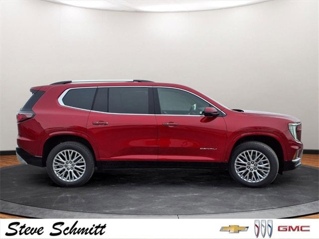 Price advertised is subject to qualifying for all applicable rebates. If you're looking for a new car, truck or SUV near St. Louis or Edwardsville, then look no further than Steve Schmitt Inc. At our Highland dealership, we have a large variety of Chevy, Buick, and GMC models, all just ripe for the picking. Steve Schmitt has delivered four generations of Customer Service...right here in Highland! Steve Sr. Plays an active role in the dealership as well as the community, and Steve Jr. Manages the day-to-day operations. At Steve Schmitt Chevy Buick GMC, it is more than a name on a sign...it is our family looking forward to exceeding your family's expectations! This vehicles includes the following features Floor Liner Package (1st and 2nd Row All-Weather Floor Liner, 3rd Row All-Weather Floor Liner, and Integrated Cargo Liner), Memory Package, Super Cruise Package (3 Years of OnStar One, Driver Attention Assist, Enhanced Automatic Parking Assist, and Super Cruise), 12 Speakers, 3.49 Final Drive Axle Ratio, 3rd Row 60/40 Power Split-Folding Bench, 3rd row seats: split-bench, 4-Wheel Disc Brakes, 6-Way Power Front Passenger Seat Adjuster, 7-Passenger Seating (2-2-3 Seating Configuration), 8-Way Power Driver Seat Adjuster, ABS brakes, Air Conditioning, Alloy wheels, AM/FM radio: SiriusXM with 360L, Apple CarPlay/Android Auto, Auto High-beam Headlights, Auto-dimming door mirrors, Auto-dimming Rear-View mirror, Automatic temperature control, Bodyside moldings, Bose Premium 12-Speaker System with Sub-Woofer, Brake assist, Bumpers: body-color, Cargo Net, Compass, Delay-off headlights, Driver 4-Way Power Lumbar Seat Adjuster, Driver door bin, Driver vanity mirror, Dual front impact airbags, Dual front side impact airbags, Electronic Stability Control, Emergency communication system: OnStar Services capable, Exterior Parking Camera Rear, Four wheel independent suspension, Front anti-roll bar, Front Bucket Seats, Front Center Armrest, Front dual zone A/C, Front fog lights, Front Passenger 4-Way Power Lumbar Seat Adjuster, Front reading lights, Fully automatic headlights, Garage door transmitter, Genuine wood console insert, Genuine wood dashboard insert, Genuine wood door panel insert, Heads-Up Display, Heated and Ventilated Driver and Front Passenger Seats, Heated door mirrors, Heated Driver and Front Passenger Seats, Heated front seats, Heated rear seats, Heated steering wheel, Illuminated entry, Leather steering wheel, Low tire pressure warning, Memory seat, Navigation System, Occupant sensing airbag, Outside temperature display, Overhead airbag, Overhead console, Panic alarm, Passenger door bin, Passenger vanity mirror, Perforated Leather-Appointed Seat Trim, Power door mirrors, Power driver seat, Power Liftgate, Power passenger seat, Power steering, Power windows, Radio data system, Radio: 15 Diagonal Premium GMC Infotainment System, Rain sensing wipers, Rear air conditioning, Rear anti-roll bar, Rear reading lights, Rear side impact airbag, Rear window defroster, Rear window wiper, Remote keyless entry, Security system, SiriusXM with 360L, Speed control, Speed-sensing steering, Split folding rear seat, Spoiler, Sport steering wheel, Steering wheel memory, Steering wheel mounted audio controls, Tachometer, Telescoping steering wheel, Tilt steering wheel, Traction control, Trip computer, Turn signal indicator mirrors, Variably intermittent wipers, Ventilated front seats, Voltmeter, and Wheels: 20 x 8 Pearl Nickel Machined Aluminum. A $299 charge for 1st Place Finish is in addition to the vehicle's sale price for all new inventory treated with our ceramic protection.$500 - GM First Responder Cash Allowance Program. Exp. 01/04/2027