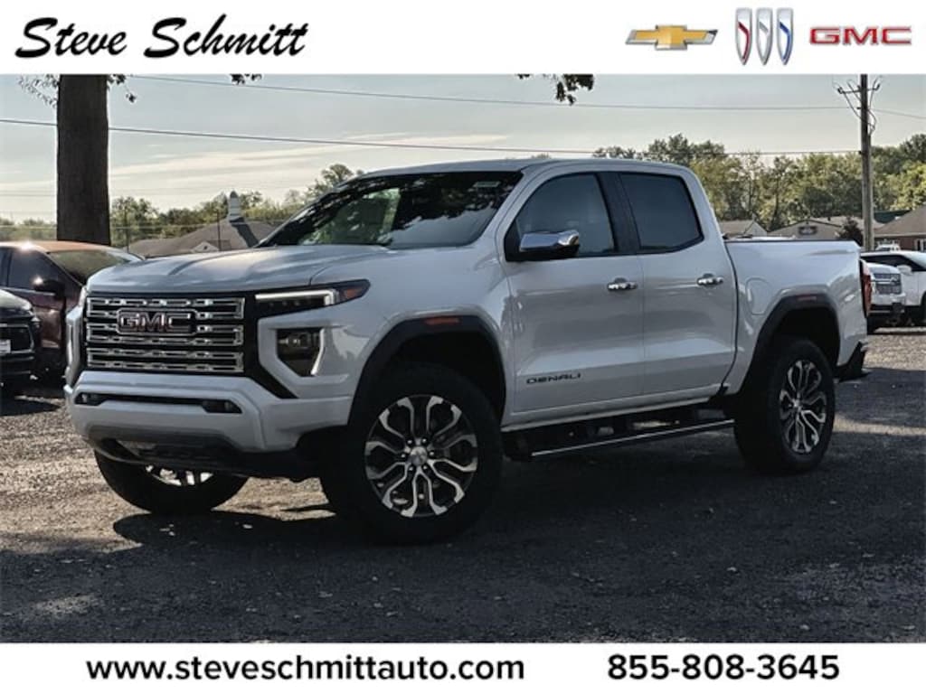 Price advertised is subject to qualifying for all applicable rebates. If you're looking for a new car, truck or SUV near St. Louis or Edwardsville, then look no further than Steve Schmitt Inc. At our Highland dealership, we have a large variety of Chevy, Buick, and GMC models, all just ripe for the picking. Steve Schmitt has delivered four generations of Customer Service...right here in Highland! Steve Sr. Plays an active role in the dealership as well as the community, and Steve Jr. Manages the day-to-day operations. At Steve Schmitt Chevy Buick GMC, it is more than a name on a sign...it is our family looking forward to exceeding your family's expectations! This vehicles includes the following features Canyon Safety Plus Package (Blind Zone Steering Assist w/Trailering, Rear Cross Traffic Braking, and Ultrasonic Rear Park Assist), Preferred Equipment Group 5SB (120-Volt Bed Mounted Power Outlet, 2 Rear USB Ports in Center Console (Charge-Only), 5 Rectangular Chrome Assist Steps, 6-Way Power Passenger Seat Adjuster, 8-Way Power Driver Seat Adjuster, Adaptive Cruise Control, Automatic Emergency Braking, Canyon Pro Safety, Driver & Front Passenger Illuminated Visors, Driver & Front Passenger Ventilated Seats, Driver Memory, Driver Seatback Map Pocket, Dual-Zone Auto Climate Control Air Conditioning, EZ-Lift & Lower Tailgate, Following Distance Indicator, Forward Collision Alert, Front LED Fog Lamps, Front Pedestrian & Bicyclist Braking, HD Surround Vision, Heated Driver & Front Passenger Seats, Heated Steering Wheel, Inside Rear-View Auto-Dimming Mirror, IntelliBeam Automatic High Beam On/Off, Interior Overhead Courtesy Light w/Dual Reading Lamp, Lane Keep Assist w/Lane Departure Warning, Multicolor 6.3 Diagonal Head-Up Display, MultiStow Tailgate Storage Compartment, Power Driver Lumbar Control Seat Adjuster, Power Passenger Lumbar Control Seat Adjuster, Premium 7-Speaker Bose Sound System, Rear Center Fold-Down Armrest w/2 Cupholders, Rear of Console 120-Volt Power Outlet, Rear Pedestrian Alert, Remote Vehicle Starter System, Safety Alert Seat, Spray-On Bedliner w/GMC Logo, Tailgate Keyed Cylinder Lock, Tilt & Telescopic Manual Steering Column, and Wireless Phone Charging), 2 1st Row USB Charge/Data Ports, 3.42 Rear Axle Ratio, 4-Wheel Disc Brakes, 7 Speakers, ABS brakes, Air Conditioning, Alloy wheels, AM/FM radio: SiriusXM with 360L, Apple CarPlay/Android Auto, Auto High-beam Headlights, Auto-dimming Rear-View mirror, Automatic Stop/Start, Automatic temperature control, Brake assist, Bumpers: body-color, Cargo Area Lamps (LPO), Cargo Tie-Downs (4) (LPO), Compass, Delay-off headlights, Driver door bin, Driver Mode Selector, Driver vanity mirror, Dual front impact airbags, Dual front side impact airbags, Electronic Stability Control, Emergency communication system: OnStar, Front anti-roll bar, Front Bucket Seats, Front Center Armrest, Front dual zone A/C, Front fog lights, Front License Plate Kit, Front Passenger Seatback Map Pocket, Front reading lights, Front wheel independent suspension, Genuine wood dashboard insert, Genuine wood door panel insert, Heads-Up Display, Heated door mirrors, Heated front seats, Heated steering wheel, Illuminated entry, Low tire pressure warning, Memory seat, Navigation System, Occupant sensing airbag, Off-Road Suspension, Outside temperature display, Overhead airbag, Overhead console, Panic alarm, Passenger door bin, Passenger vanity mirror, Perforated Leather-Appointed Seat Trim, Power door mirrors, Power driver seat, Power passenger seat, Power steering, Power windows, Radio data system, Radio: 11.3 Diagonal Premium GMC Infotainment Sys, Rear reading lights, Rear seat center armrest, Rear step bumper, Rear window defroster, Remote keyless entry, Security system, SiriusXM w/360L, Speed control, Speed-sensing ste