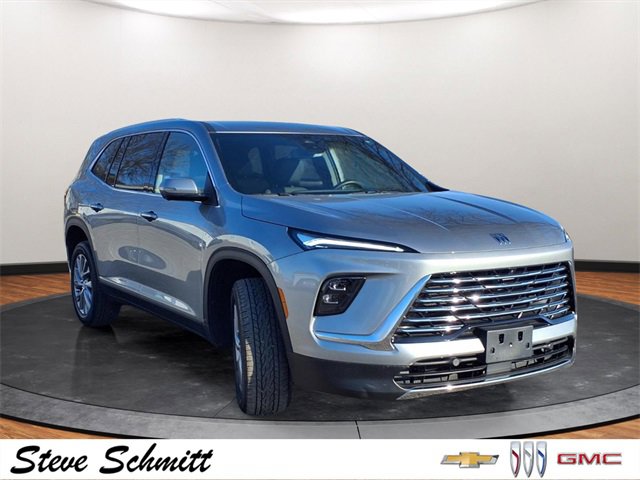 If you're looking for a new car, truck or SUV near St. Louis or Edwardsville, then look no further than Steve Schmitt Inc. At our Highland dealership, we have a large variety of Chevy, Buick, and GMC models, all just ripe for the picking. Steve Schmitt has delivered four generations of Customer Service...right here in Highland! Steve Sr. Plays an active role in the dealership as well as the community, and Steve Jr. Manages the day-to-day operations. At Steve Schmitt Chevy Buick GMC, it is more than a name on a sign...it is our family looking forward to exceeding your family's expectations! This vehicles includes the following features Front Mounting License Plate Bracket Package, Preferred Equipment Group 1SD, 12 Speakers, 3rd row seats: split-bench, 4-Wheel Disc Brakes, ABS brakes, Air Conditioning, Alloy wheels, AM/FM radio: SiriusXM with 360L, Auto High-beam Headlights, Auto-dimming door mirrors, Auto-dimming Rear-View mirror, Automatic temperature control, Bose Premium 12-Speaker Audio System, Brake assist, Bumpers: body-color, Compass, Delay-off headlights, Deleted OnStar Basics, Driver 4-Way Power Lumbar Seat Adjuster, Driver 8-Way Power Seat Adjuster, Driver door bin, Driver vanity mirror, Dual front impact airbags, Dual front side impact airbags, Electronic Stability Control, Emergency communication system: OnStar and Buick connected services capable, Four wheel independent suspension, Front anti-roll bar, Front Bucket Seats, Front Center Armrest, Front dual zone A/C, Front Passenger 4-Way Power Lumbar Seat Adjuster, Front Passenger 6-Way Power Seat Adjuster, Front reading lights, Fully automatic headlights, Heated door mirrors, Heated Driver and Front Passenger Seats, Heated front seats, Heated steering wheel, Illuminated entry, Leather steering wheel, Leatherette Seat Trim, Low tire pressure warning, Navigation System, Occupant sensing airbag, Outside temperature display, Overhead airbag, Overhead console, Panic alarm, Passenger door bin, Passenger vanity mirror, Power door mirrors, Power driver seat, Power Liftgate, Power passenger seat, Power steering, Power windows, Premium audio system: Buick Infotainment System, Radio data system, Radio: Infotainment Center, Rear air conditioning, Rear anti-roll bar, Rear reading lights, Rear side impact airbag, Rear window defroster, Rear window wiper, Remote keyless entry, Security system, SiriusXM with 360L Trial Subscription, Speed control, Speed-sensing steering, Spoiler, Steering wheel mounted audio controls, Tachometer, Telescoping steering wheel, Tilt steering wheel, Traction control, Trip computer, Turn signal indicator mirrors, Variably intermittent wipers, Voltmeter, Wheels: 20 Alloy with Medium Android Finish, Wireless Apple CarPlay, and Wireless Google Android Auto.